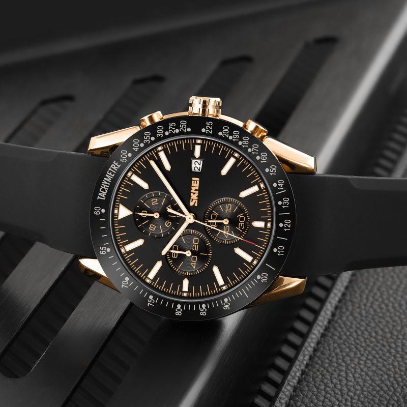 The Skmei 9253 watch with a silicone strap evokes the aesthetic of exclusive sports models from brands like the TAG Heuer Carrera and Rolex Daytona. Its elegant design, accentuated by a distinctive bezel and dial with subdials, exudes a professional, sporty character. Now you can have this luxurious, expressive style on your wrist without sacrificing the comfort and lightness of a silicone strap.
