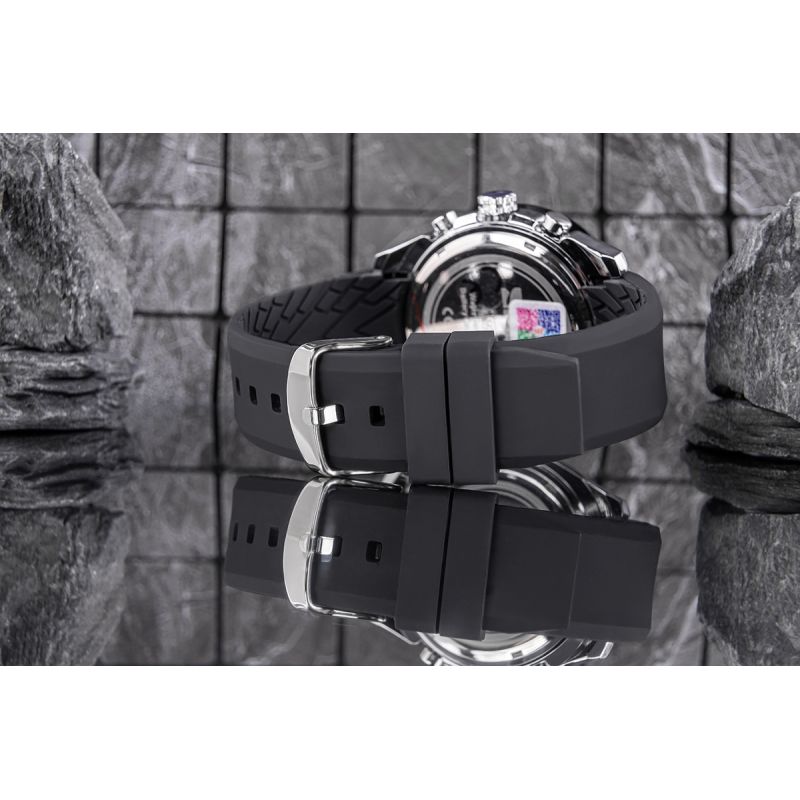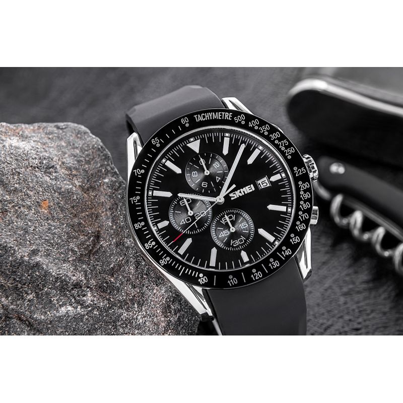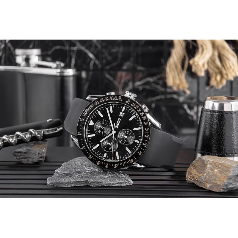 The Skmei 9253 watch with a silicone strap evokes the aesthetic of exclusive sports models from brands like the TAG Heuer Carrera and Rolex Daytona. Its elegant design, accentuated by a distinctive bezel and dial with subdials, exudes a professional, sporty character. Now you can have this luxurious, expressive style on your wrist without sacrificing the comfort and lightness of a silicone strap.