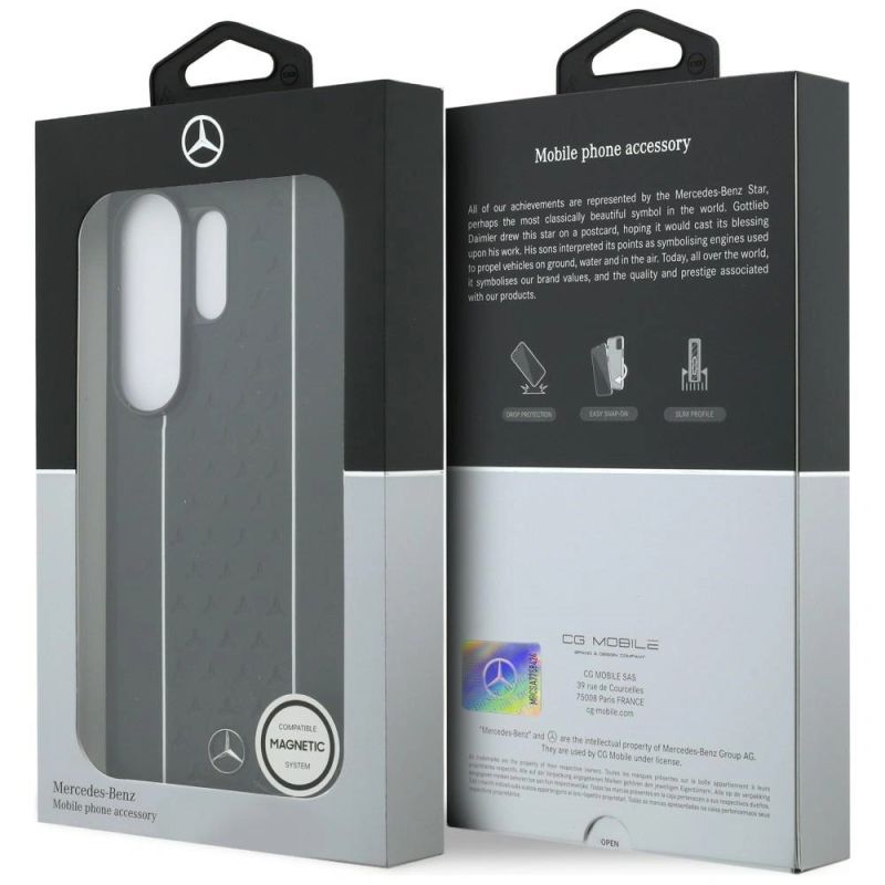 The back is decorated with a distinctive tire pattern and a metal Mercedes-Benz logo , which emphasize the elegant and sporty character of the case.