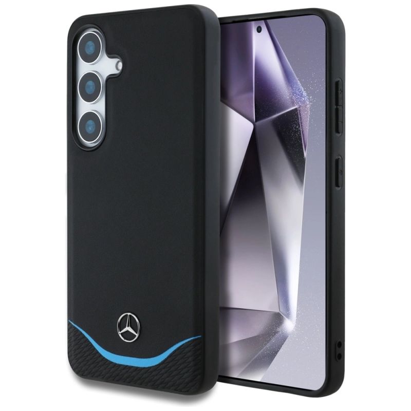 Mercedes Leather Contrasted Blue Horizontal Curve MagSafe Case for Samsung Galaxy S25 - Black