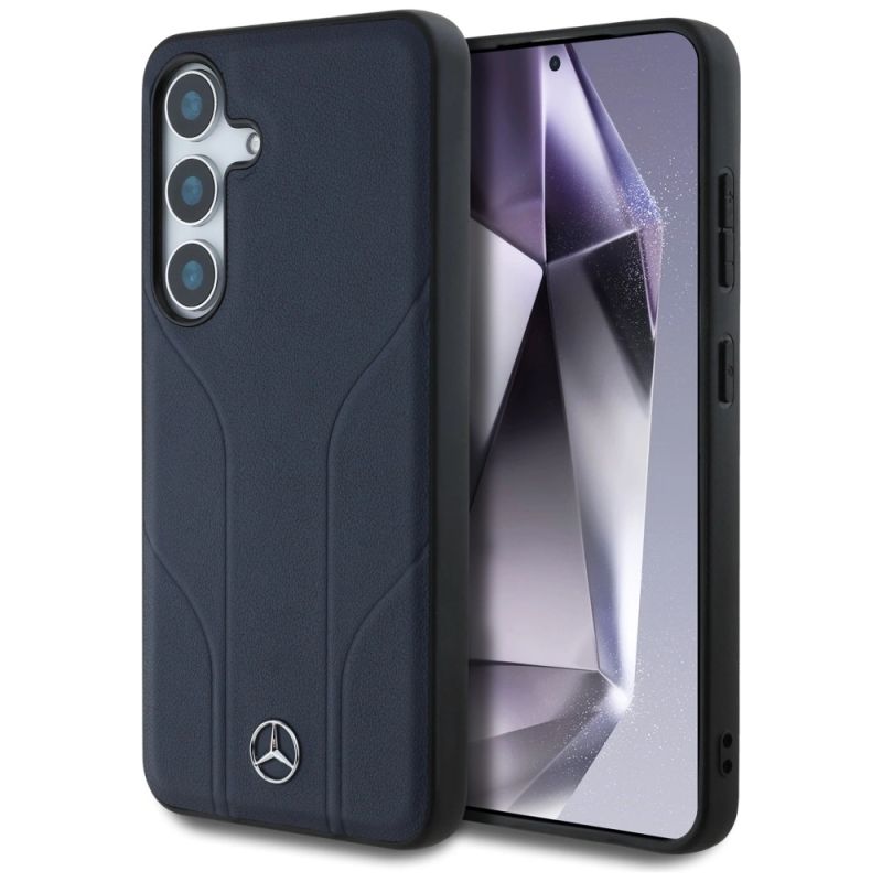 Mercedes Leather Debossed Lines MagSafe Case for Samsung Galaxy S25 - Blue
