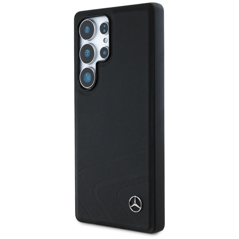Mercedes Leather Horizontal Debossed Curves MagSafe Case for Samsung Galaxy S25 Ultra - Black