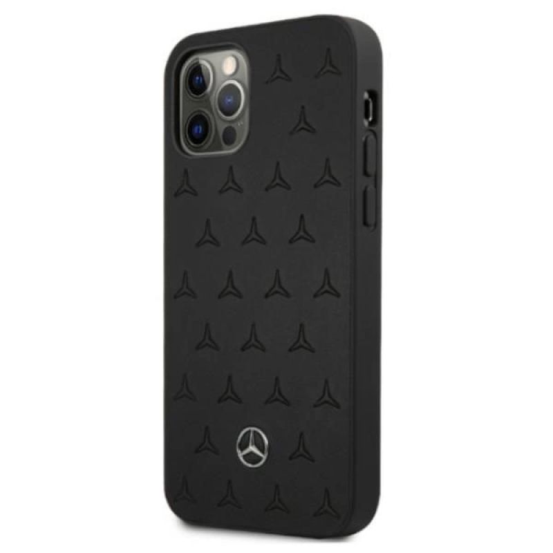Mercedes Leather Stars Pattern Case for iPhone 12 Pro Max - Black