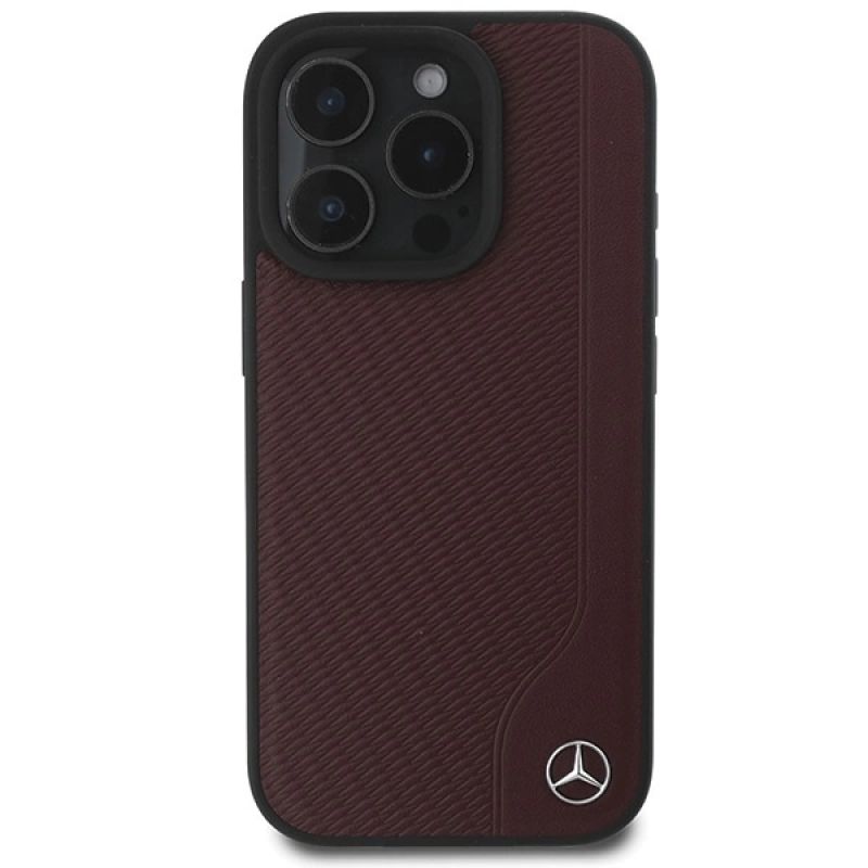 3. Mercedes MB Wood Imitation Leather MagSafe iPhone 16 Pro Case - Red