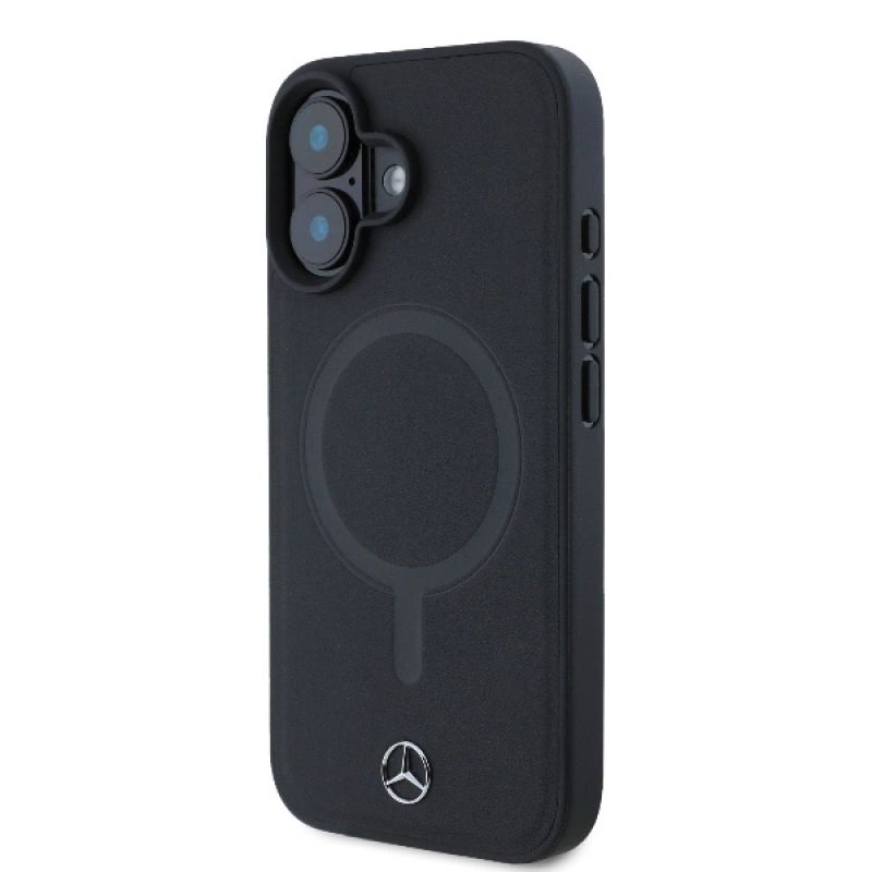 Mercedes Plain Smooth Leather MagSafe iPhone 16 Case - Black