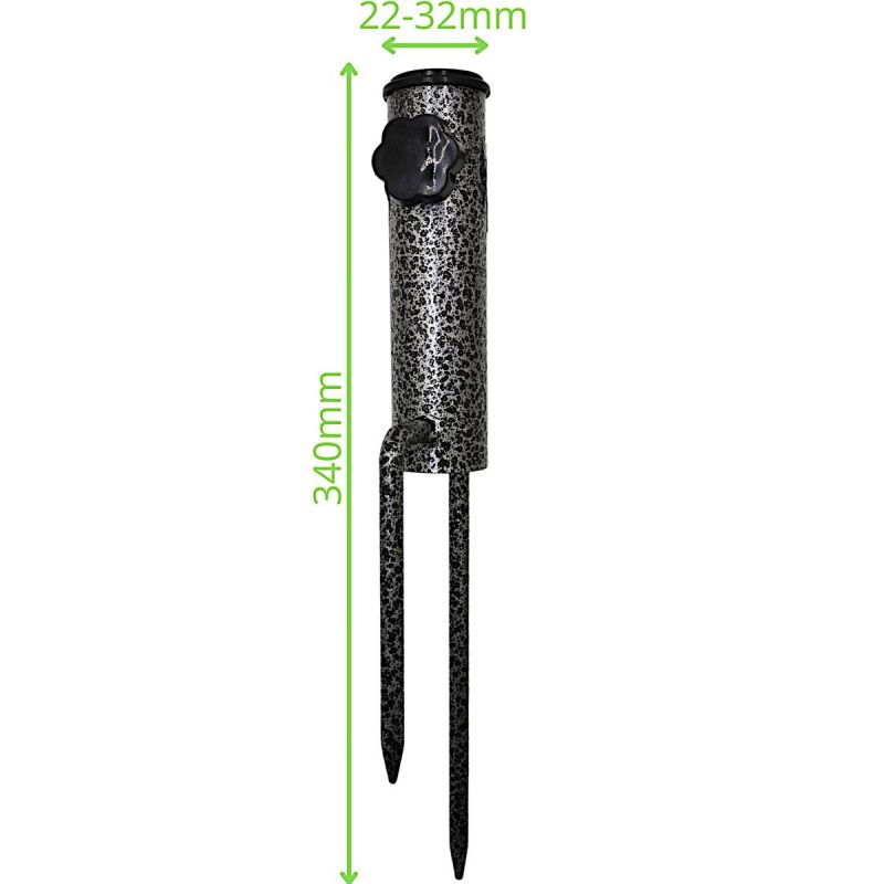- Length of spikes (driven into the ground): 11.5 and 19.5 cm