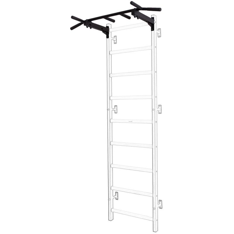 A permanently mounted metal pull-up bar with 6 different handles allows you to work on the strength of your arm and back muscles using various grips, such as a wide grip.