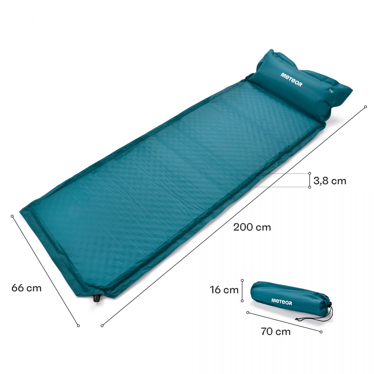 Meteor self-inflating mat 200×66×3.8 cm sea green 16439