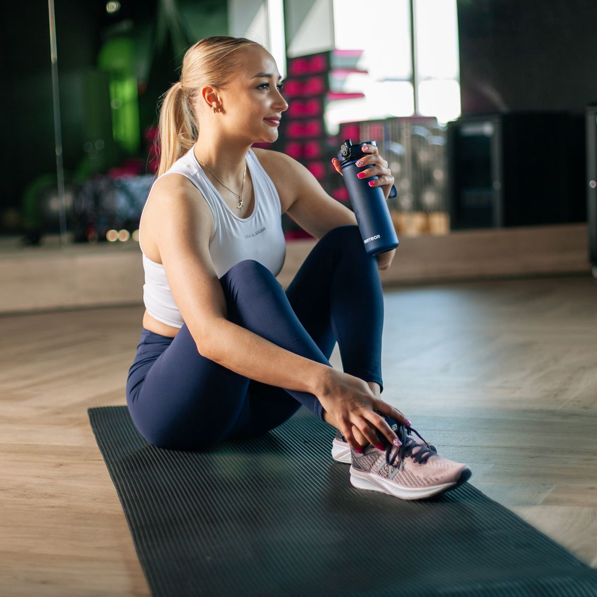 A practical Meteor water bottle that you can take with you to training, the gym, school, or on a bike ride. The bottle is transparent with a matte finish and a non-slip surface.