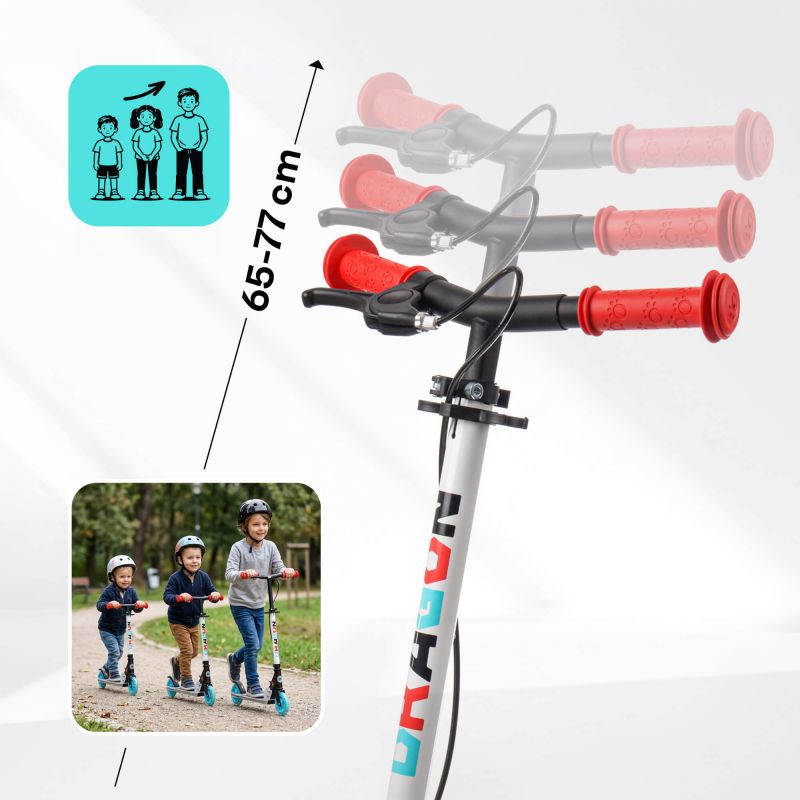 - The Meteor Dragon scooter is equipped with ABEC-7 bearings, ensuring a smooth and quiet ride. A three-position handlebar height adjustment allows the scooter to be adjusted to the child's height, ensuring a comfortable and ergonomic ride. Rubber handlebar grips ensure a secure grip, which is crucial for user safety.