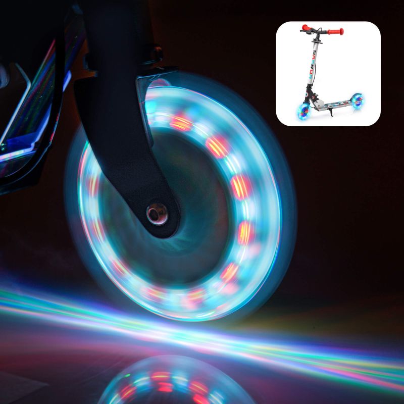 - The glowing wheels add to the scooter's appeal and increase its visibility when riding at dusk. They are made of durable PU material, ensuring a smooth ride and resistance to damage.
