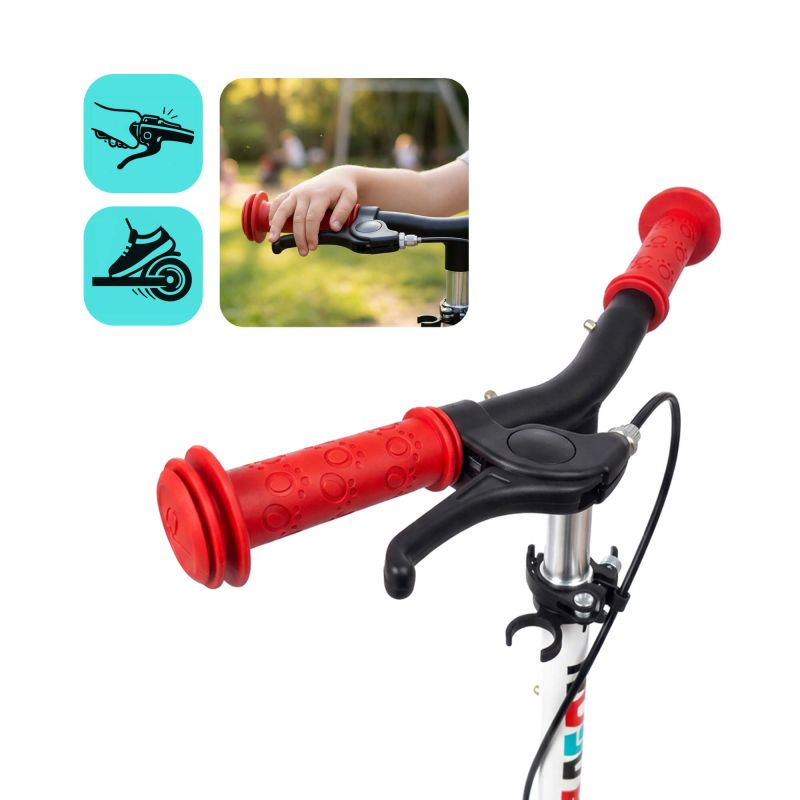 Safety and control - rubber handlebar grips guarantee a secure grip, while the foot brake on the rear wheel and the handbrake on the handlebar ensure effective braking and full control of the scooter, which is crucial for your child's safety.