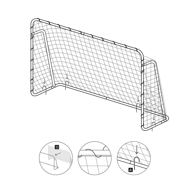 Easy assembly – a few clicks and the net is ready for play. You can quickly set up and take down the goal, making it much easier to organize your time.