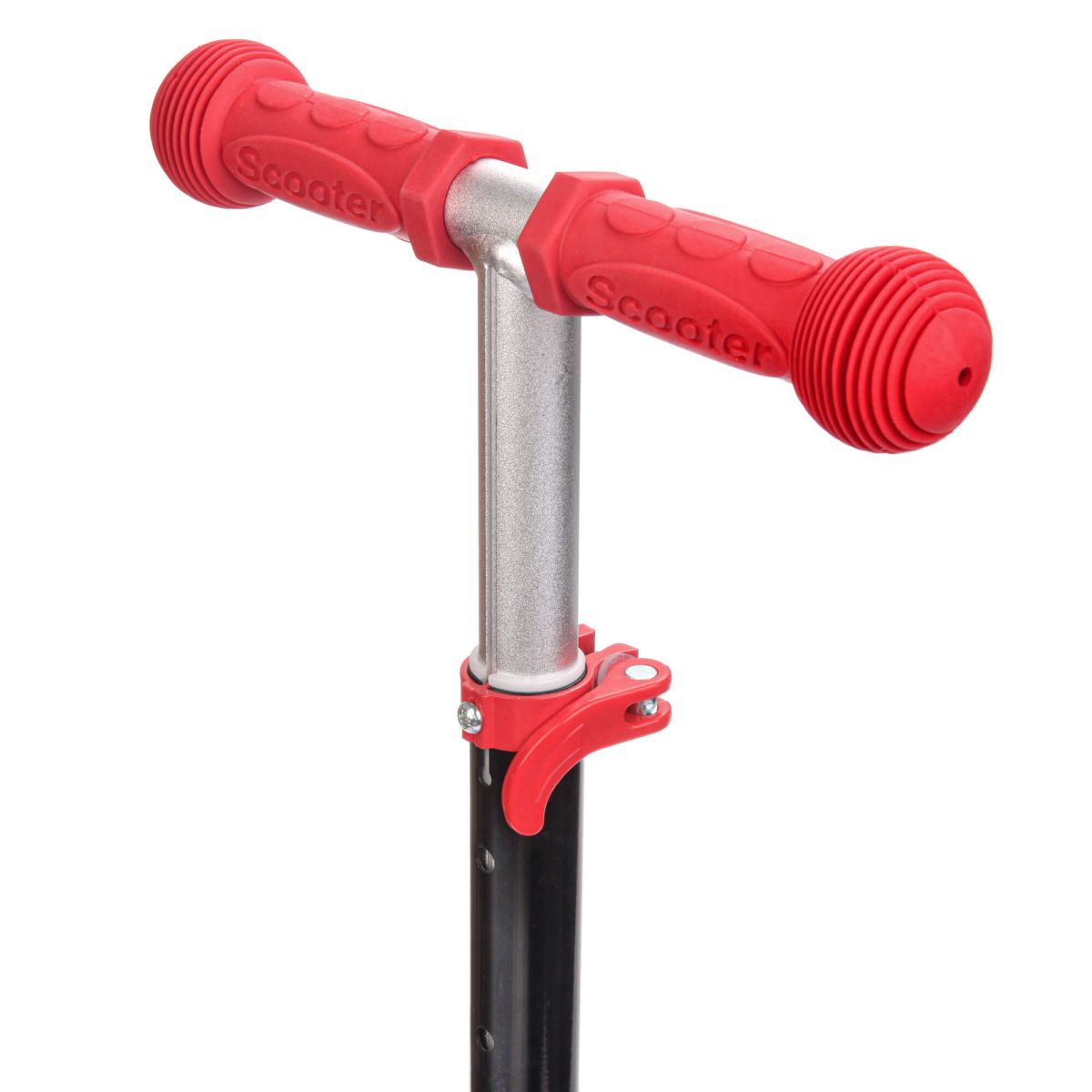 The T-bar handlebar with rubber grips provides control and a comfortable grip. The soft grip surface protects against calluses and abrasions. The handlebar can be easily removed with a single button, making the scooter compact and easy to transport. Its height can be adjusted to four heights: 60/65/70/75cm, allowing you to easily adjust the scooter to your child's height.