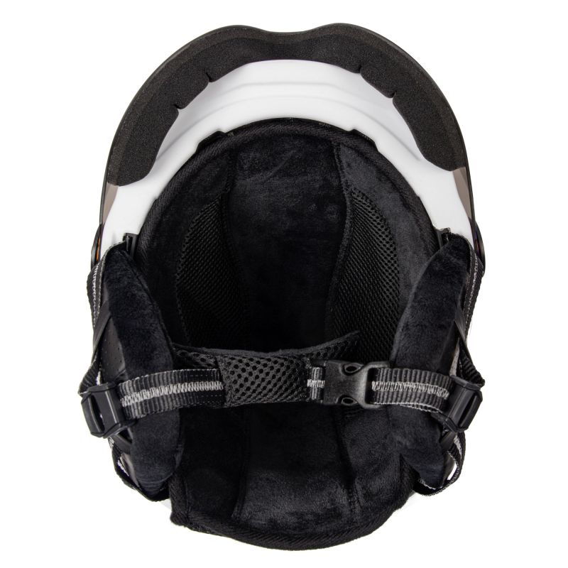 - The outer shell is made of PC material, which is highly durable and resistant to outdoor conditions. The built-in visor with an S2 filter perfectly replaces goggles, providing sun protection adapted to all weather conditions. The specially designed inner shell reduces impact forces and absorbs any shocks and vibrations generated during accidents. Its low weight ensures freedom of movement, better control, and a wider field of vision during outdoor activities.