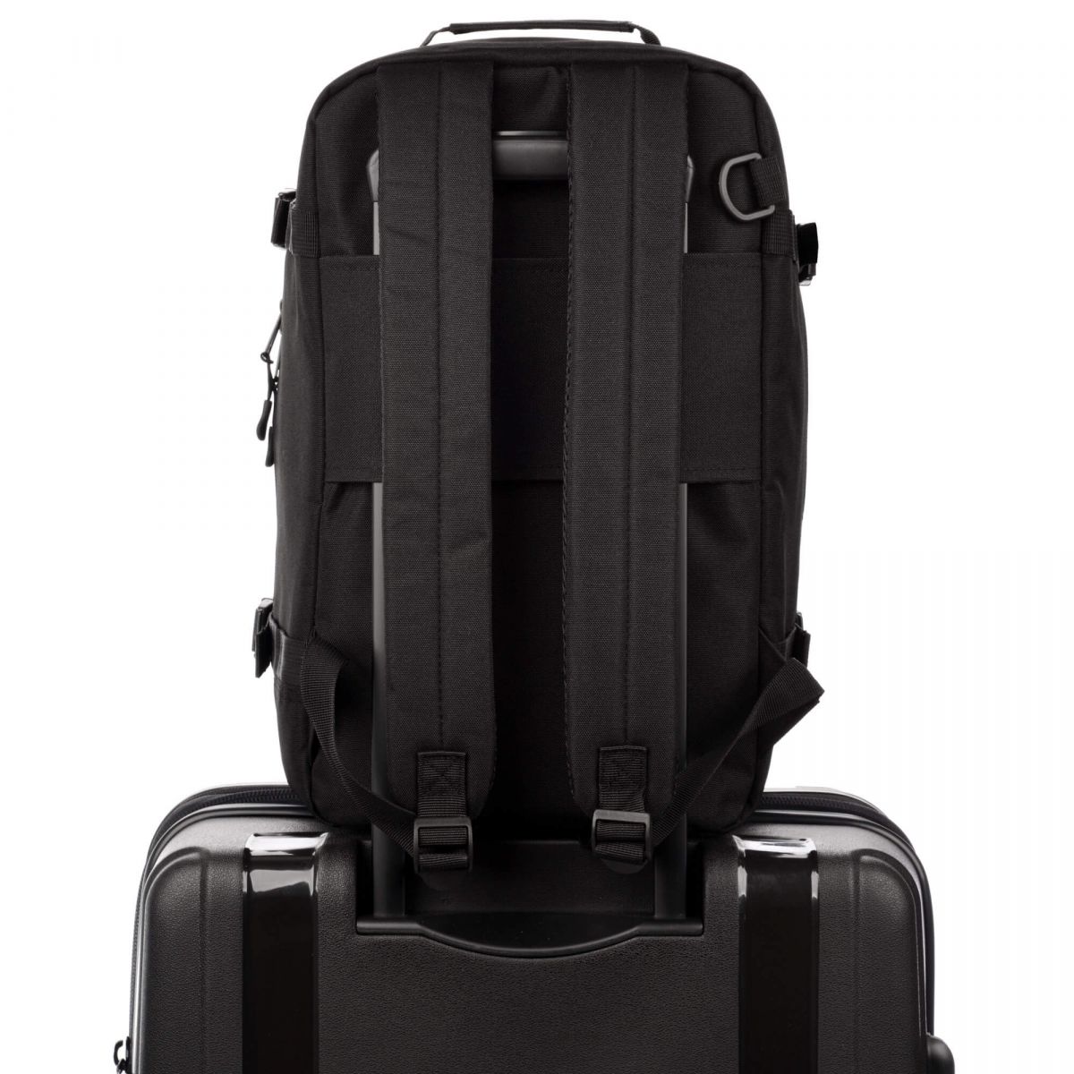 - The main compartment and three smaller pockets, including one mesh pocket, offer thoughtful organization for essentials and small items. An additional zippered pocket on the outside is perfect for documents, a phone, or a tablet. A specially designed loop for attaching the backpack to a suitcase handle makes it easy to carry your luggage.