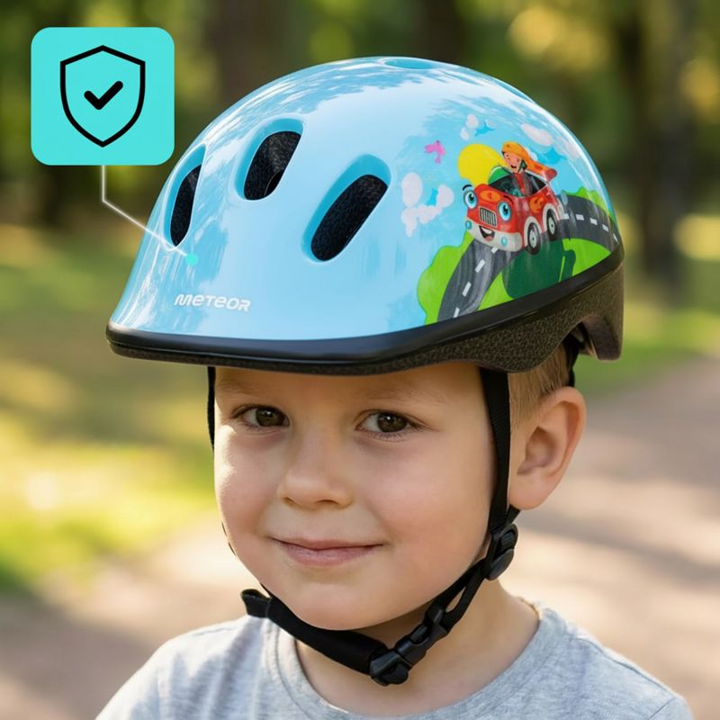 The Meteor KS06 children's helmet complies with the European standard EN1078 and has a CE safety certificate, which proves the high quality of the product.