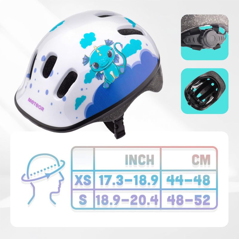 Durable materials – Made of high-quality PVC and EPS materials, the helmet absorbs impact forces while ensuring durability and exceptional lightness, without unnecessary strain on the child's delicate neck. Your child can fully focus on their favorite pastime, with complete freedom and control of movement. The Meteor KS06 helmet is so lightweight, your child won't even notice it on their head!