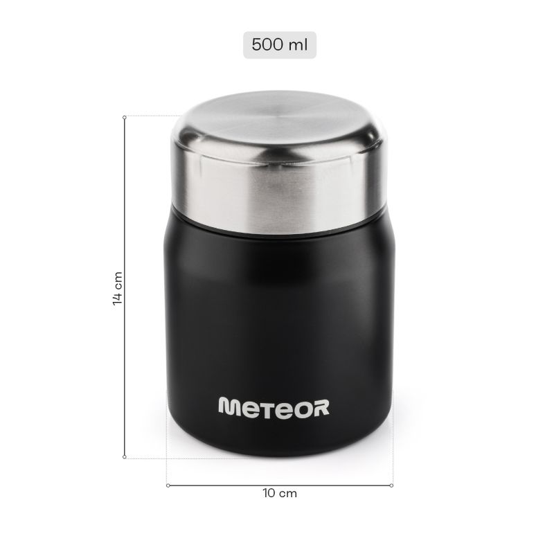 Versatile use – the lunch thermos not only stores hot soups and semi-liquid dishes, but also chills food. Simply prepare the thermos properly – pour boiling water a few minutes before adding a hot dish, or very cold water before adding a cold dish to enhance its thermal properties. With the Meteor lunch thermos, you'll be able to enjoy your meal anytime!