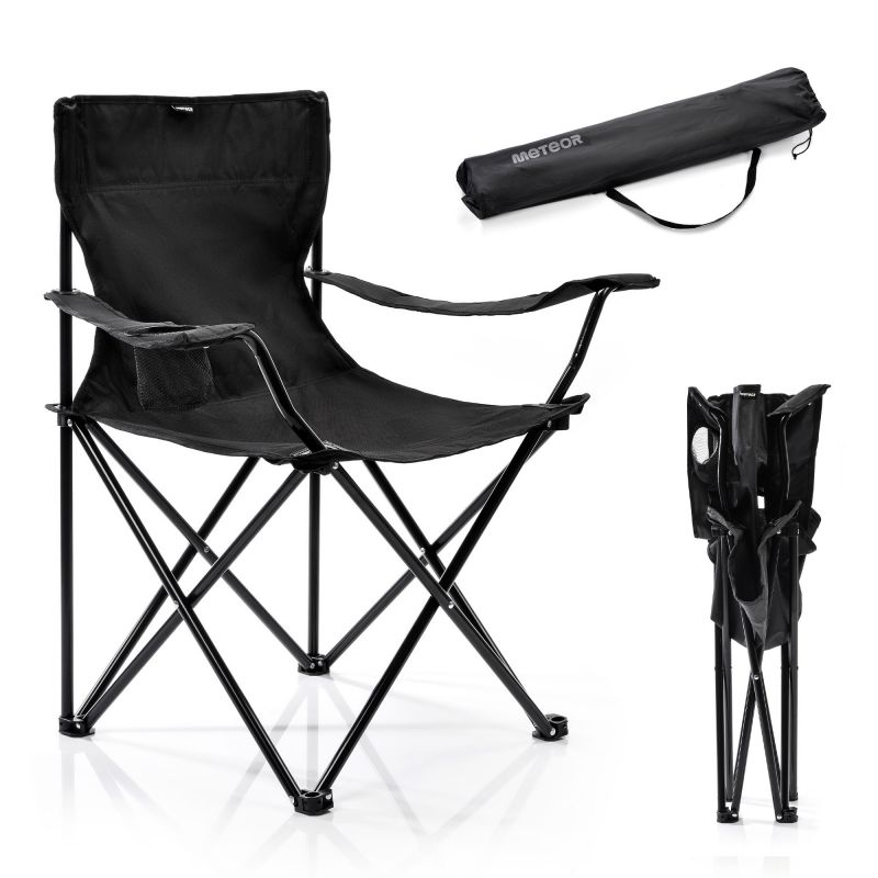 - The Meteor Quay is a camping chair that perfectly meets the expectations of those seeking to combine comfort and functionality during their active recreation. Designed with mobility in mind, its compact dimensions make it easy to transport and store. Although the chair weighs only 2 kg, it can easily support a load of up to 100 kg. This means users can enjoy both lightness and stability.