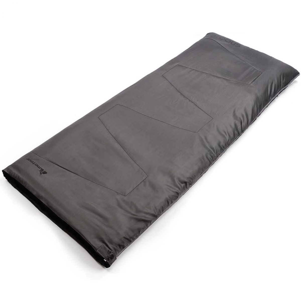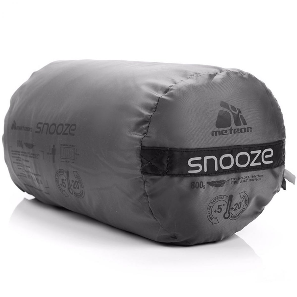 The lightweight Meteor Snooze sleeping bag is surprisingly lightweight and warm for overnight stays outdoors. This quilt-style sleeping bag with a light filling and a side zipper is a convenient solution for camping. A Velcro tab prevents the zipper from unraveling. A carry bag is included.