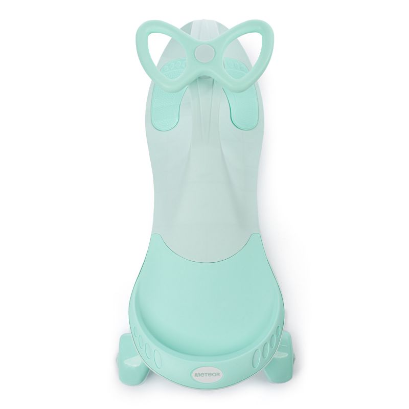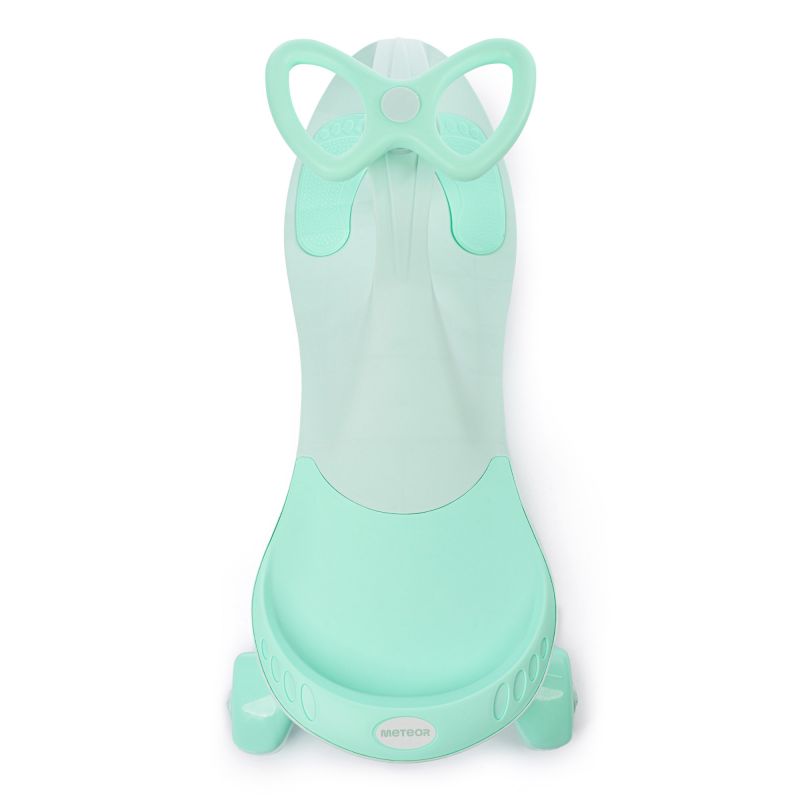 - The Meteor ride-on has a contoured seat with a slight rise that prevents the child from slipping out of it while riding.