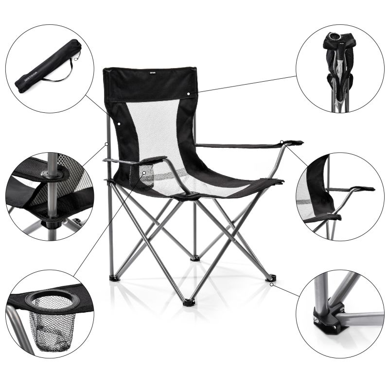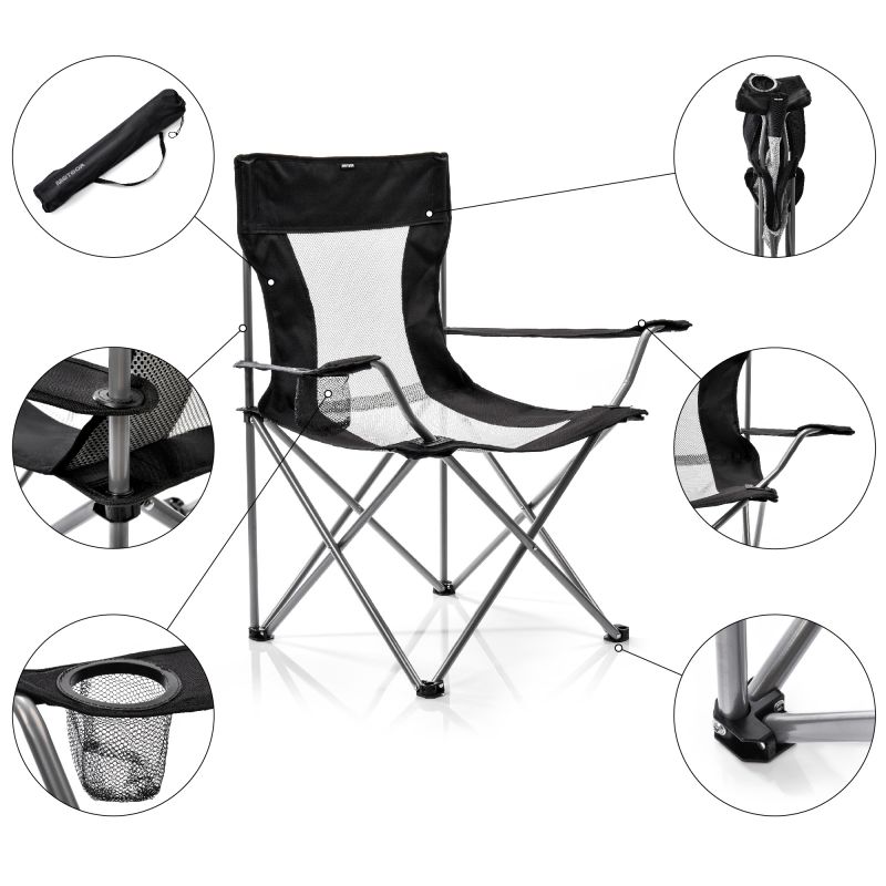 - Built with durability and strength in mind, the Meteor Tripper chair combines a seat made of waterproof 600D polyester and mesh with a powder-coated steel frame. Wide legs provide added stability, while the easy folding and unfolding feature and a practical storage bag guarantee comfort on every trip.