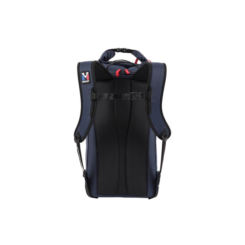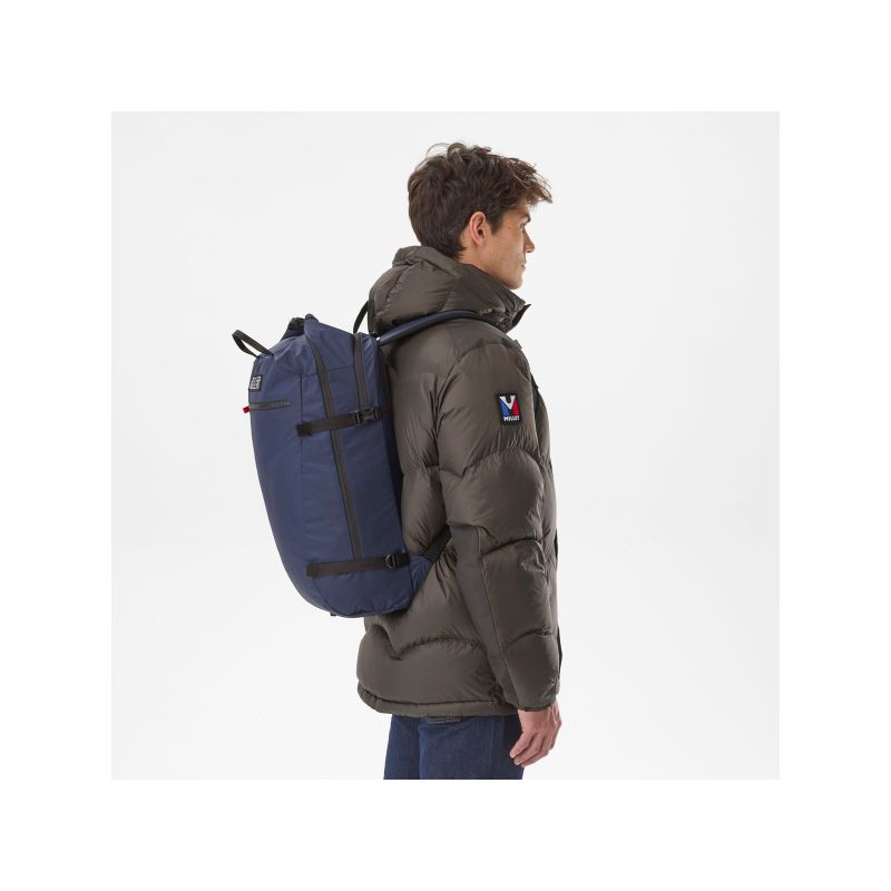 The 25-liter Divino backpack is ready for the day. Thanks to its practical roll-top opening and side zipper, we carefully slip our media devices into the padded pockets, add our provisions and hiking gear to the central compartment, and our water bottle goes into the side mesh pocket. Tighten the side compression straps and off you go! We clip our keys to the key ring in the front zippered pocket, then grab the backpack by the handles. Water-resistant, it's perfect for everyday use, so you always have everything with you. We love its retro look, inspired by the Heritage Millet model.