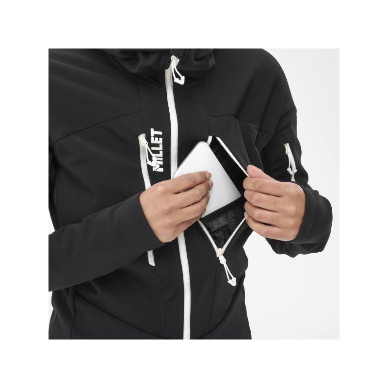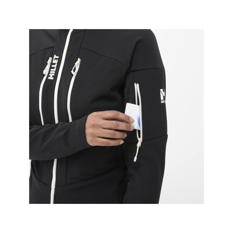 Two large chest pockets make it easy to quickly store ski skins on the summit, while a ski pass pocket on the sleeve adds practicality. Reflective branding provides extra visibility, complementing the functionality of this high-performance mountain jacket.