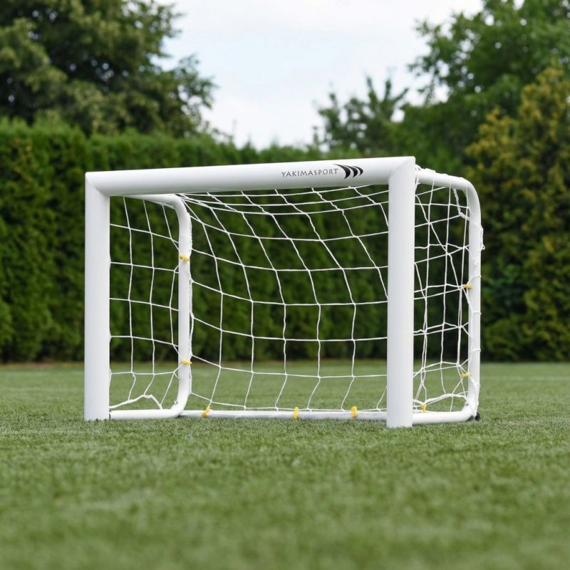 MINI Goal 120cm x 80cm - A very solid training goal. - Perfect for amateur and professional training in sports clubs, football academies and MOSiR. - Goal dimensions: 0.8m x 1.2m, depth 80cm; - Oval aluminum profile - Easy to carry and store - foldable back of the goal; - Portable goal; - White color - The goal comes with a net, a set of hooks, pegs and keys needed for assembly. Product code: 100673
