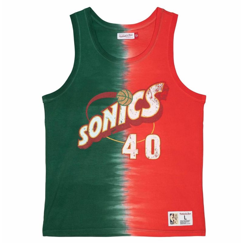 Mitchell & Ness NBA Seattle Supersonics Shawn Kemp Tie Dye Cotton Tank - TTNK3206-SSUYYSKEGNRD