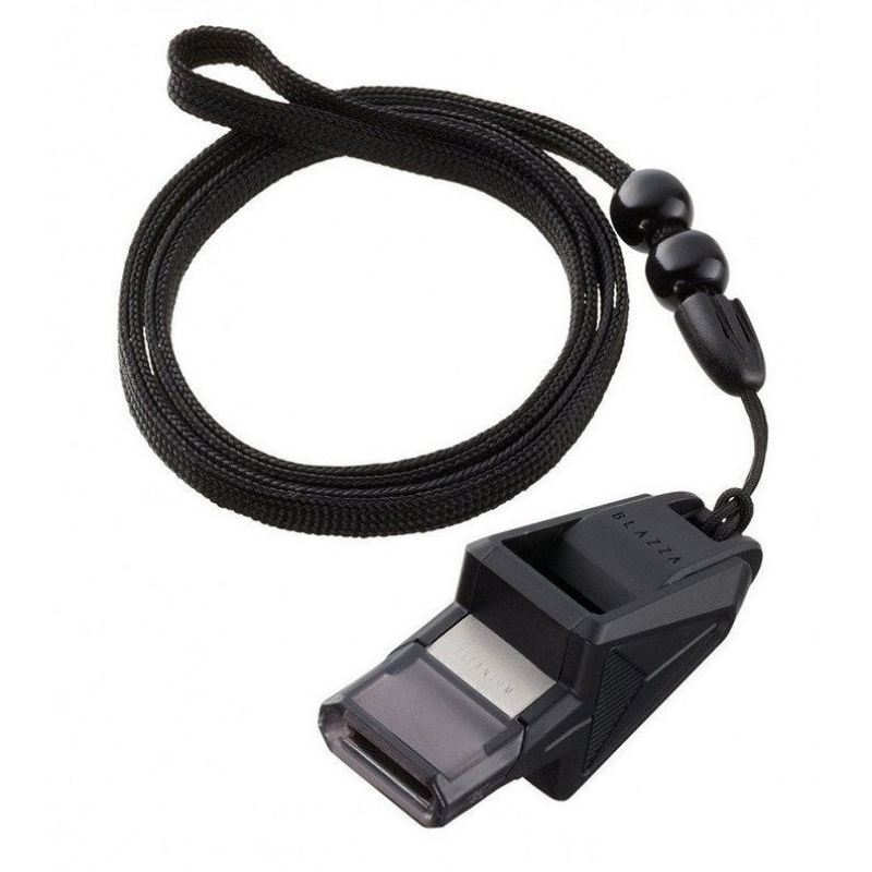 The whistle's titanium construction is covered with high-quality, soft but resistant plastic.