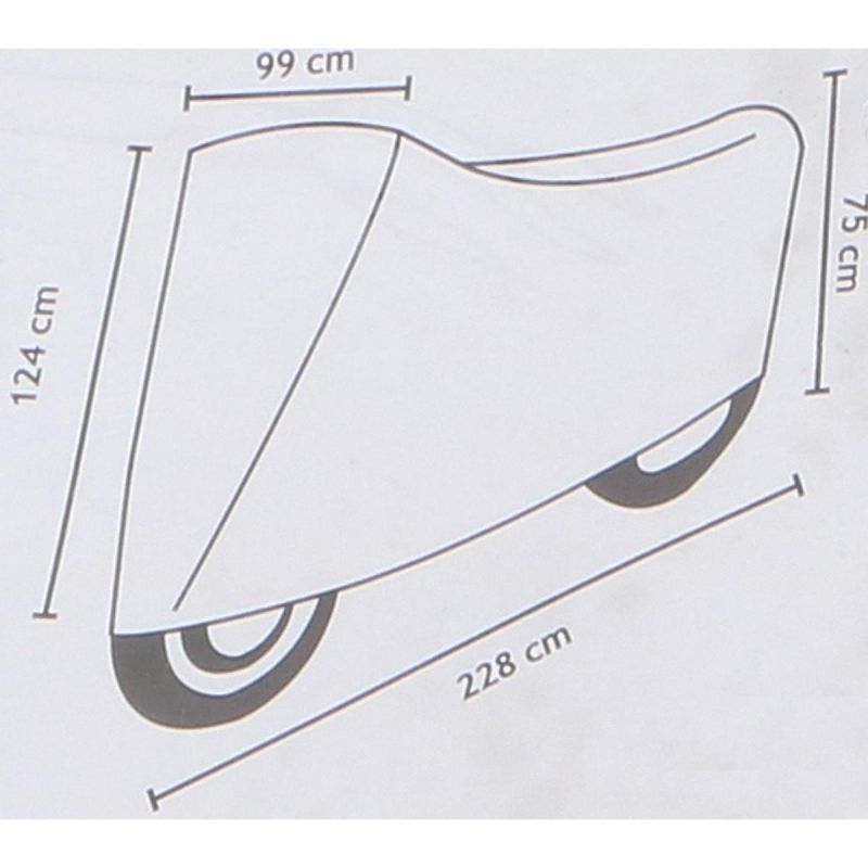 DUNLOP MOTORCYCLE COVER 228x124/75x99CM, suitable for both traditional motorcycles and scooters. This is a rain cover for a motorcycle, resistant to weather conditions.