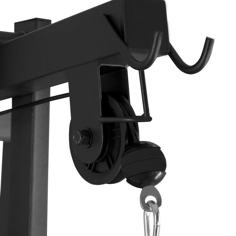 The multi-gym allows you to develop all muscle groups: lats, pectorals, deltoids, trapezius, core, glutes, forearms, deltoids, and triceps. It also allows for leg exercises while seated or standing. You can perform over 40 exercises on the multi-gym!