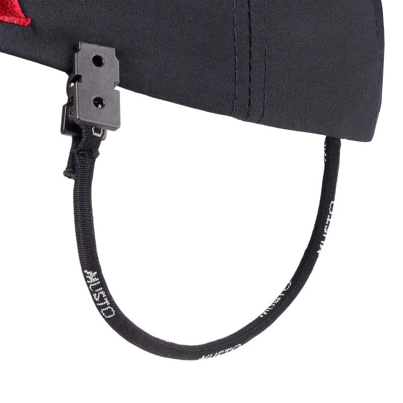 A clip to attach the hat to the hood or collar to keep the hat secure on windy days