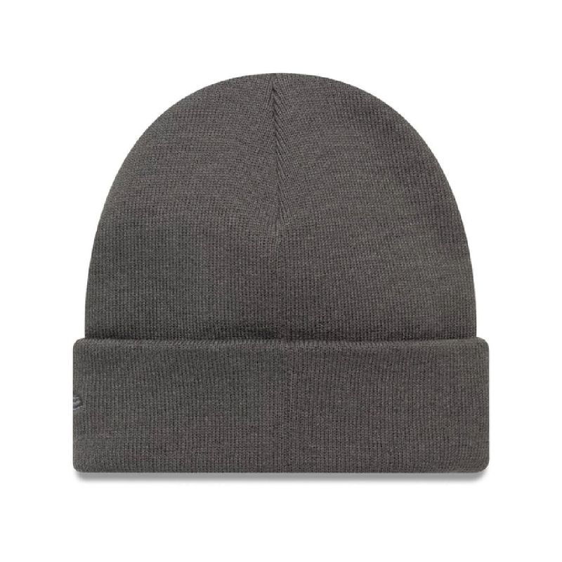 The New Era NBA Mini Logo Dark Grey Cuff Knit Beanie is a winter must-have for basketball fans.