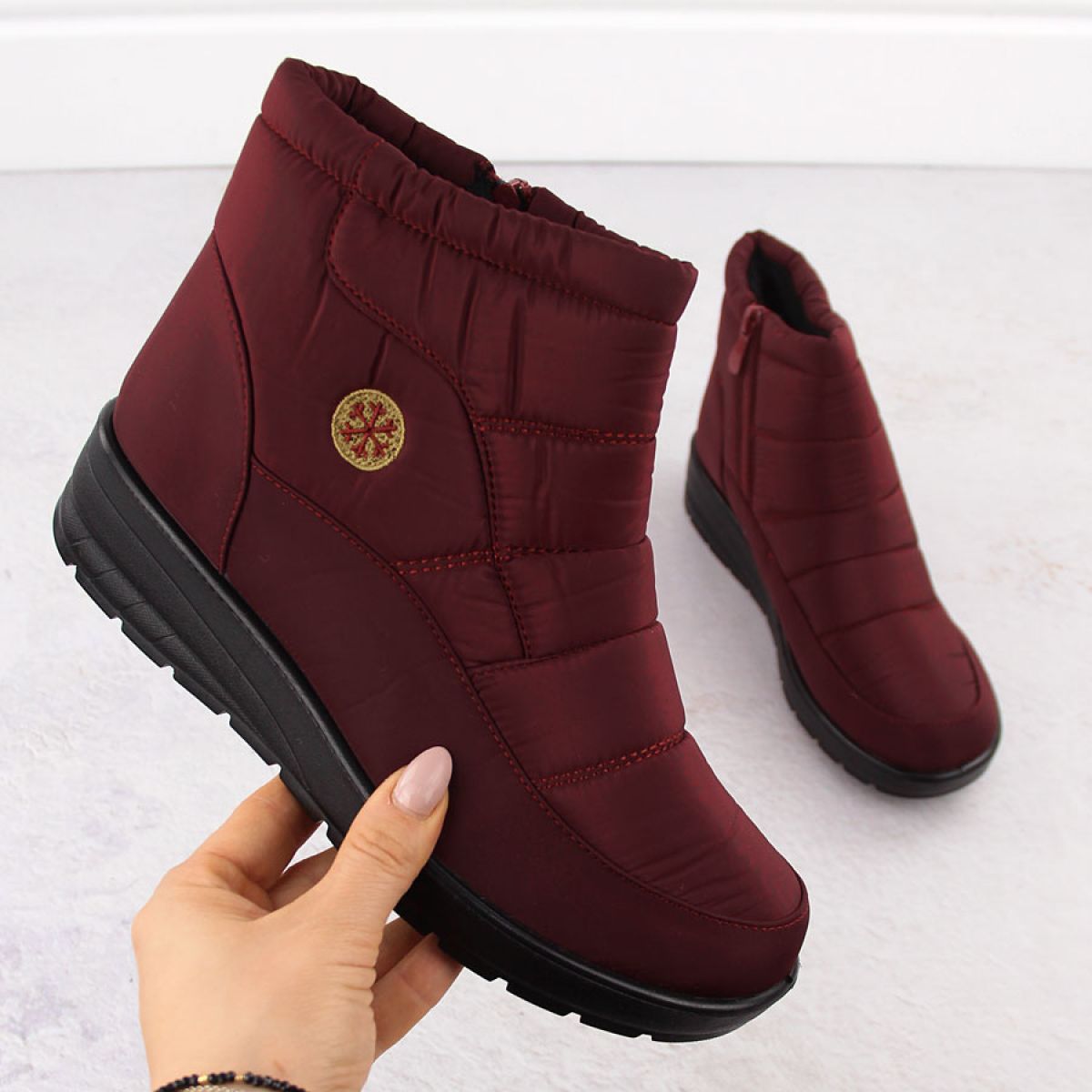 - Snow boots have a solid, thick sole that insulates against the cold.