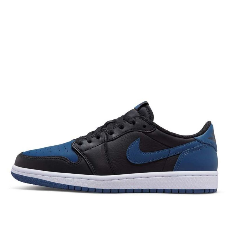 - The Air Jordan 1 Low OG "Mystic Navy" is designed in black with navy accents.