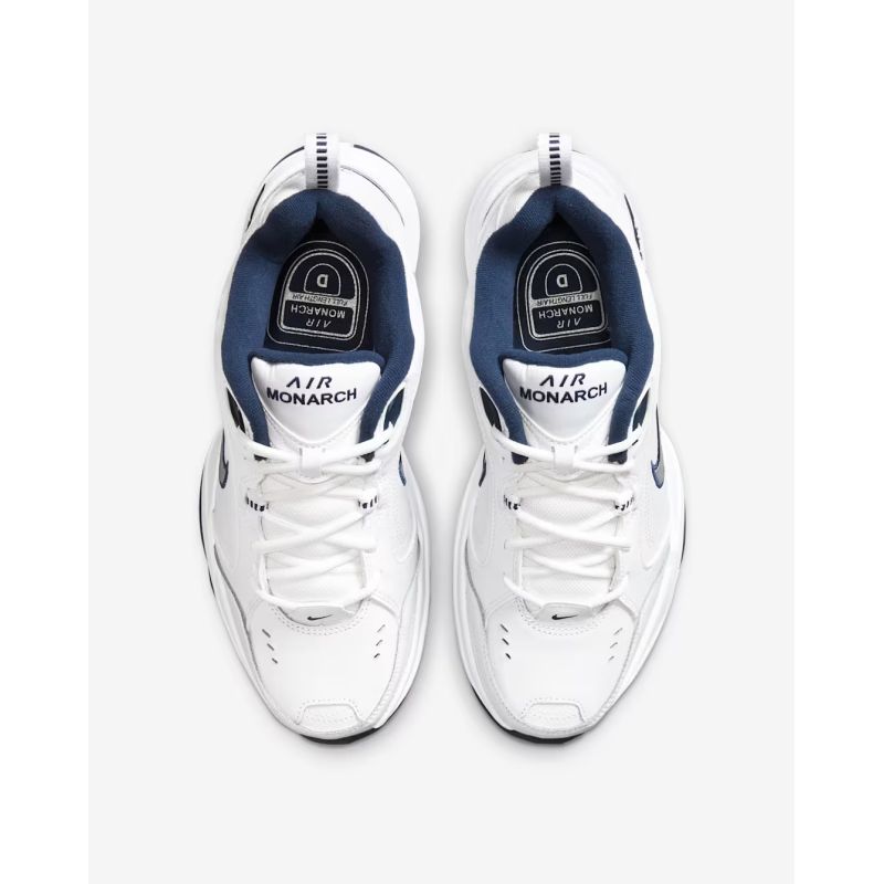 The Nike Air Monarch IV 415445 102 Men's Nike Air Monarch Athletic Shoes are made of durable materials. They are designed for running, training, or everyday use. The sole features distinctive Air-Sole units. Safety on any surface is guaranteed by the appropriate tread, which is characterized by stability and high traction.