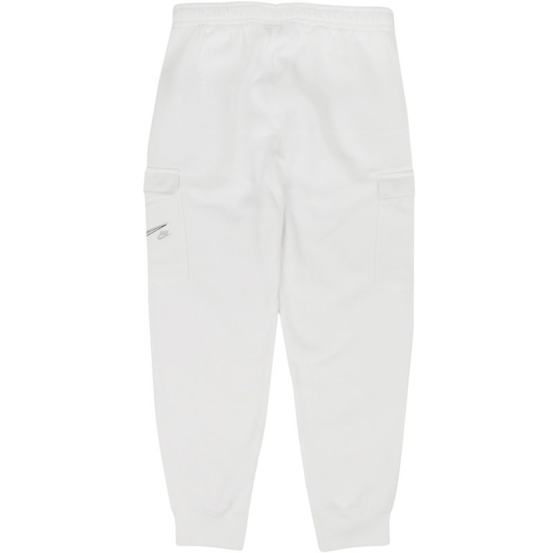 Nike Court Fleece Cargo Pants, White DQ5477 100. Nike men's sweatpants showcase a modern style. The cargo-style cut is perfect for everyday wear. Subtle branding. High cotton content. Soft, internal padding. Elastic waist with internal drawstring adjustment. Open side and cargo pockets. Ribbed hems allow for footwear display. Main material: 80% cotton, 20% polyester. Additional material: 100% cotton.