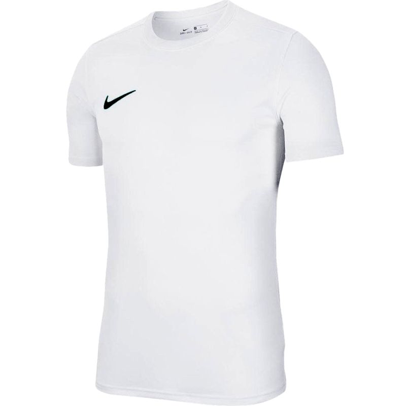 The Nike Dri-Fit Park VIII Kids' T-Shirt, White HV8182 100, is a junior's T-shirt that delivers reliable comfort during active play. It features a standard fit with short sleeves and a crew neck for comfort and natural range of motion. Dri-FIT technology wicks sweat away from the skin. Mesh back panel. Material: 100% recycled polyester
