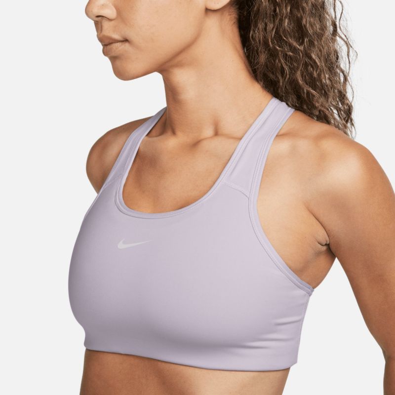 - The Nike Swoosh Classic Medium Support Sports Bra protects your body from prying eyes while you engage in physical activity like spinning, dancing or cardio training.
