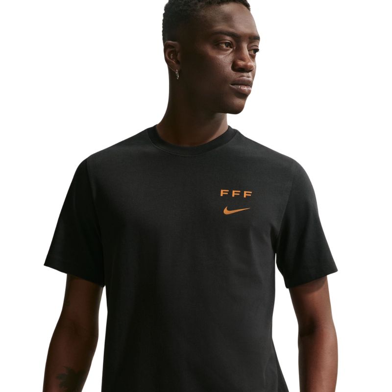 The Nike FFF Men's T-Shirt Lbr Wrdmark Black IQ2232 010 celebrates the French national team and lets you show your support for the team in a sporty style. Made of 100% soft cotton, it provides comfort, breathability, and everyday wear. The classic cut ensures freedom of movement and easy matching with various styles. Material: 100% cotton