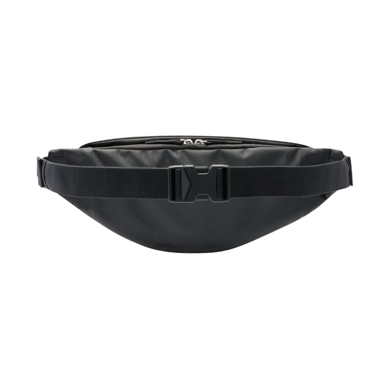 Nike Heritage Anthracite Waist Bag FZ7221 060. A practical Nike waist bag for jogging, walking, and training enthusiasts. A zipper closure makes it easy to access the contents. The hip belt with a buckle is adjustable. The manufacturer's logo on the front. Zippered mesh pocket inside. A smaller back pocket, also zippered. Specifications: Material: Main body / lining: 100% polyester. Dimensions: 40.5 cm x 10 cm x 15 cm. Capacity: 3 l.