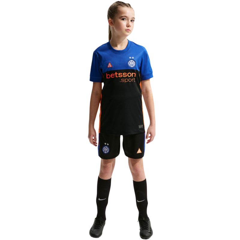 Nike Inter Milan 2026 Stadium SE Kids' Jersey, Black/Blue IB3536 413 The Nike Inter Milan Kids' Jersey combines football style with a spirit of adventure. For the first time, the club takes the team from the pitch to the Alps – perfect for any altitude (a jacket can be added for higher altitudes). A design inspired by football stars and the Stadium collection provides a sporty look and comfort. Nike Dri-FIT technology wicks sweat away, accelerating evaporation for all-day comfort. Slim fit. A replica kit for Inter Milan fans. Material: 100% polyester