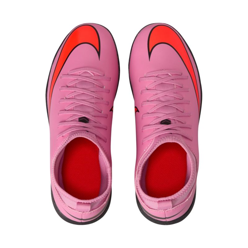 The Nike Mercurial Superfly 10 Club TF FQ8313 600 Kids' Football Boots are designed for recreational play on shorter, synthetic surfaces. They're part of the new Scary Good collection. The upper is crafted from high-quality synthetic leather and features subtle, textured details. A comfortable lining hugs the foot. A rubber turf outsole provides cushioning.