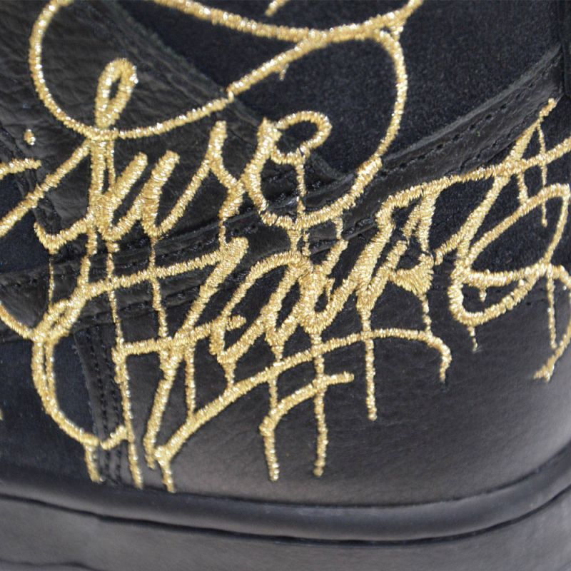 The black upper with gold accents is a New York graffiti style.