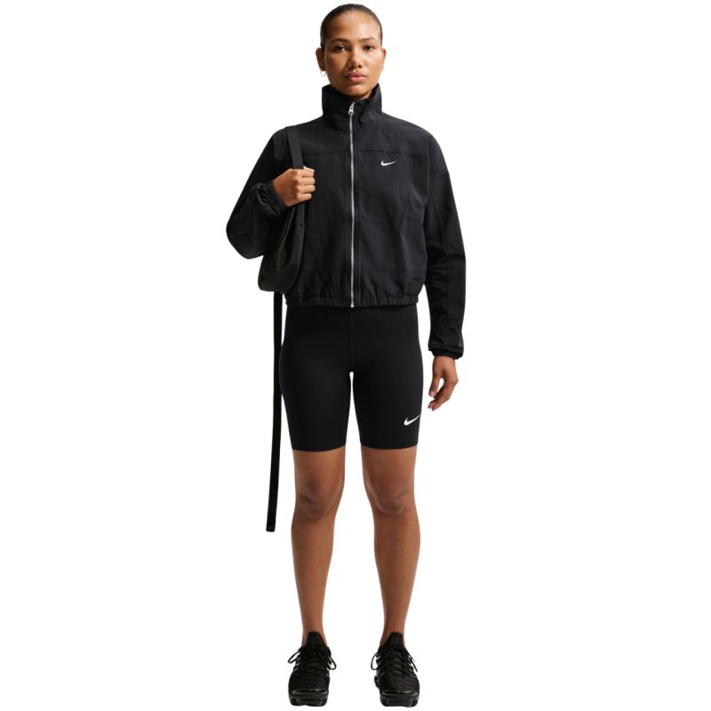 Nike Sportswear Classics Women's Shorts, Black DV7797 010. These Nike women's shorts are perfect for everyday wear. Made of a stretchy material blend, the improved fabric is less see-through and resistant to shape. High-waisted waistband. The stretchy material adapts to your movements. The printed Swoosh logo highlights the sporty character of the shorts and adds a modern touch to any style. Material: 47% cotton, 41% polyester, 12% elastane