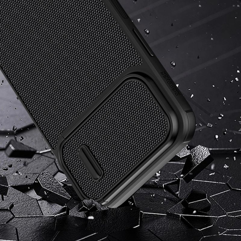 The Nillkin Textured S Case is made of high-quality materials. The unusual back panel of the cover has a pleasant-to-touch nylon fiber coating. Not only does it provide an interesting finish and design, but it is also comfortable and prevents the device from slipping out of your hand. The cover is tailored to the iPhone 14 Plus and perfectly protects it against damage caused by falls or scratches (for example by keys carried in a pocket). The case has a sliding cover for the rear camera. Thanks to it, the camera glass is protected against scratches. There is also an additional advantage for people who value the privacy and security of their data. The covered camera prevents access to video recording if someone gains remote access to the phone and turns on the view from the main camera. Raised edges around the screen protect it from scratches when it is placed on a flat surface.
