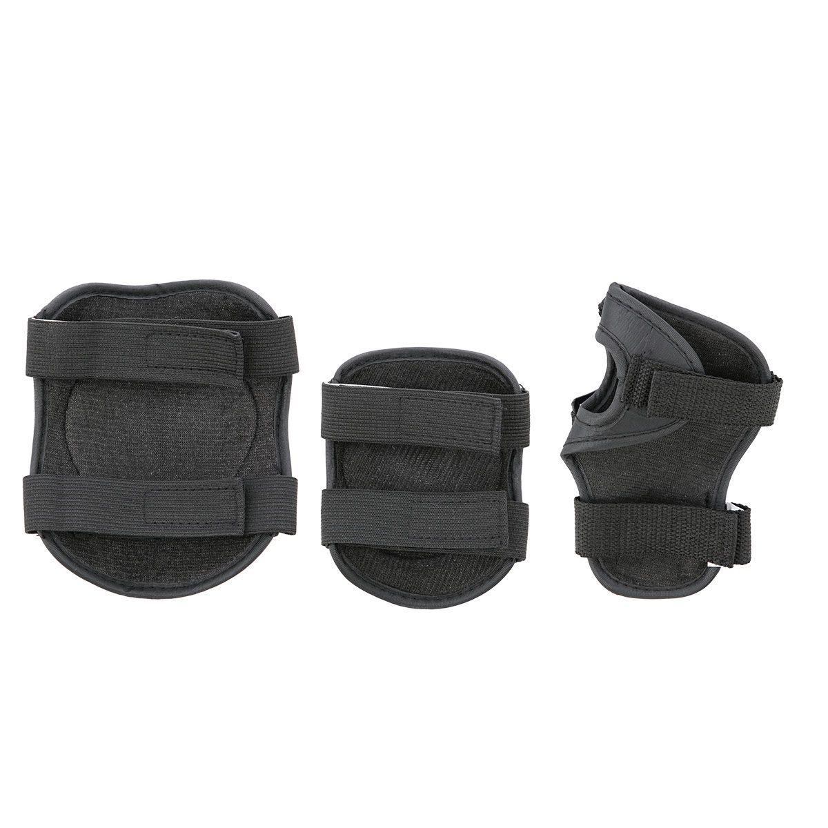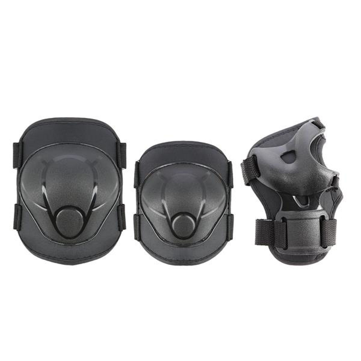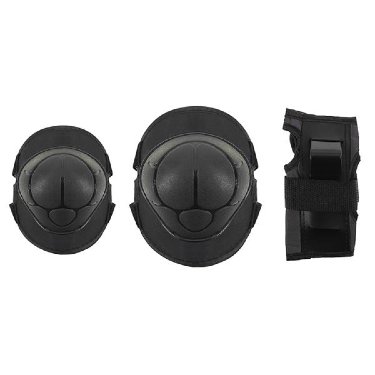 A set of wrist, elbow, and knee protectors. Made of high-quality materials, the shell is designed from a strong, lightweight material with a well-contoured profile. All protectors feature Velcro fasteners to keep them securely in place. Designed to provide maximum comfort and protection for wrists, elbows, and knees.